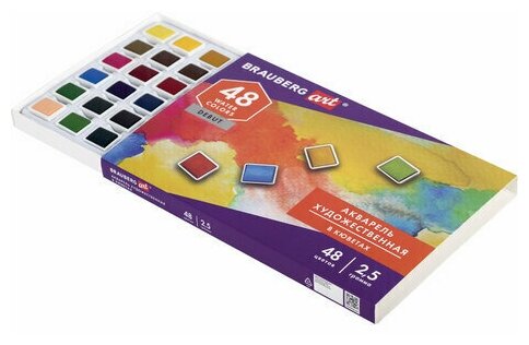 Отзывы на Комплект 3 шт, Акварель художественная в кюветах набор 48 цветов по 2.5 г, BRAUBERG ART DEBUT, 191780