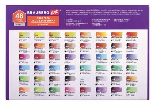 Акварель художественная / краски акварельные для рисования в кюветах Набор 48 цветов по 2,5 г, Brauberg Art Debut, 191780 1 098 ₽