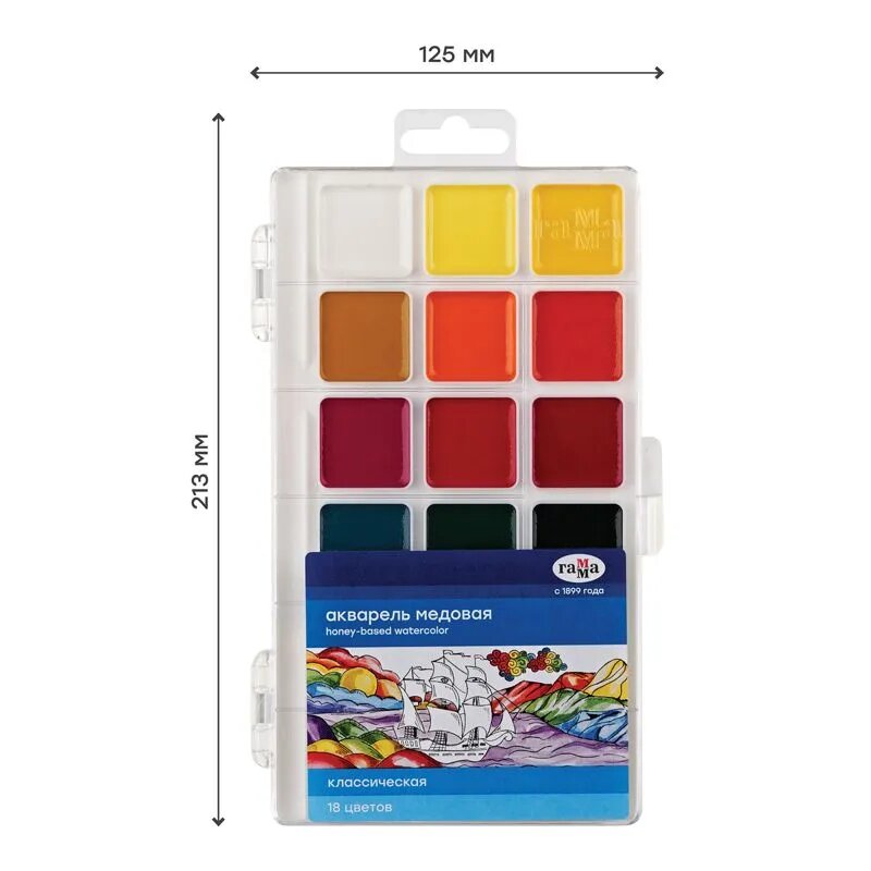 Акварель 18 цветов Гамма "Классическая", медовая, без кисти, 510 ₽