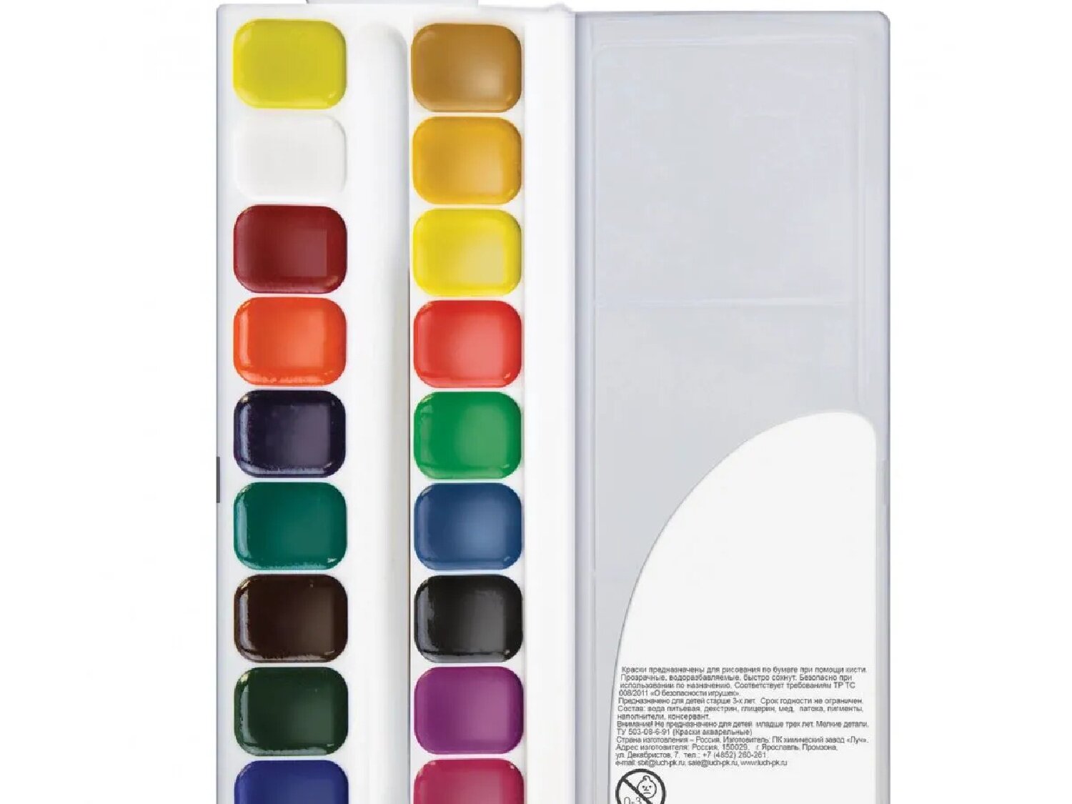 Акварель медовая 18 цветов - для рисования / краски детские / классическая палитра / в пластиковой упаковке 629 ₽