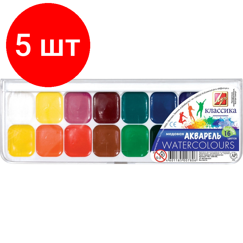Комплект 5 наб., Краски акварельн. Луч Классика 16цв б/кисти 19С 1290-08 информация: