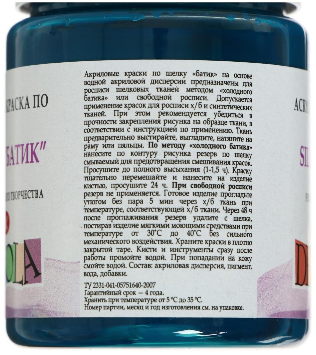 Краска по шелку "Батик" акрил 50мл банка ЗХК "Декола" Бирюзовая 4428507 3245601 263 ₽