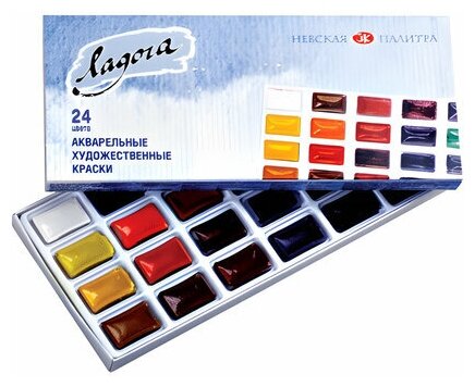 Краски акварельные для рисования Невская палитра Ладога, 24 цвета по 2,5 мл