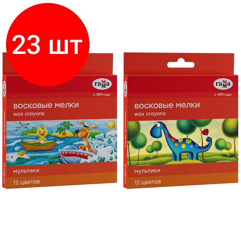 Комплект 23 шт, Мелки восковые Гамма "Мультики", 12цв., круглые, картон. упаковка, европодвес NEW информация: