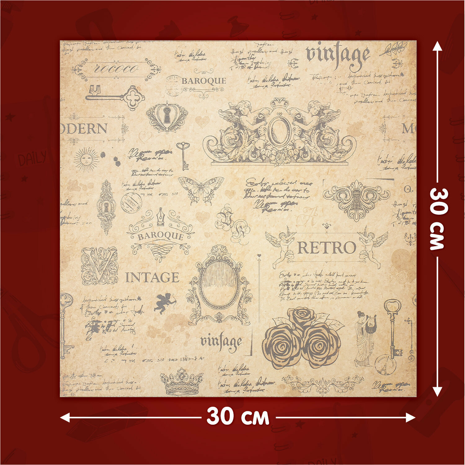 Бумага для скрапбукинга, для открыток, творчества, декора 30х30 см Ретро, двусторонняя, 12 листов, 12 дизайнов, 180 г/м2, Остров Сокровищ, 662767 информация:
