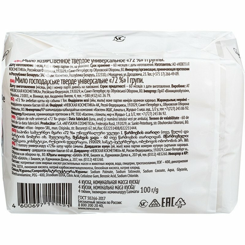 Мыло хозяйственное 72% (Невская Косметика), в упаковке 4 шт. х 100 г информация: