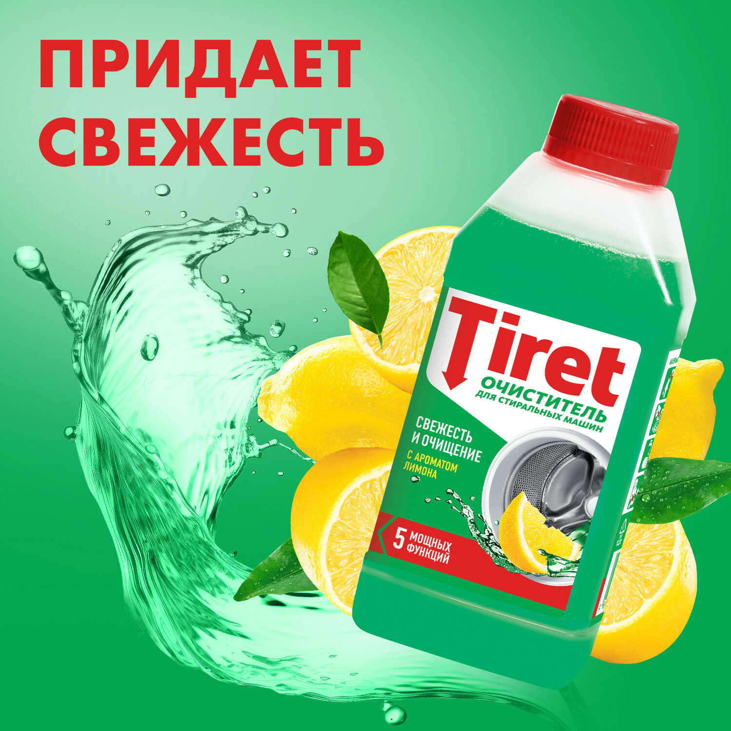 10 цен на Очиститель для стиральных машин Tiret(Тирет) Свежесть лимона от запаха, налета и накипи, 250 мл