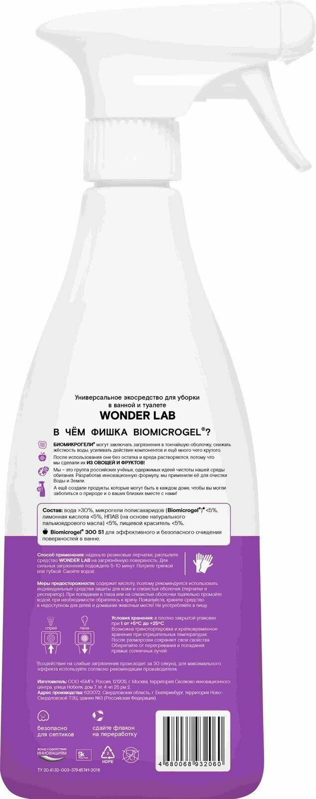Экосредство для уборки Wonder Lab В Ванной и Туалете 550 мл информация: