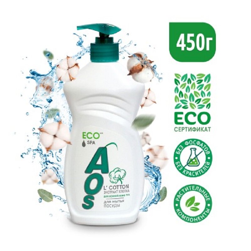 Отзывы на Средство для мытья посуды AOS ECO с Хлопком SPA уход для нежной кожи рук: 450гр