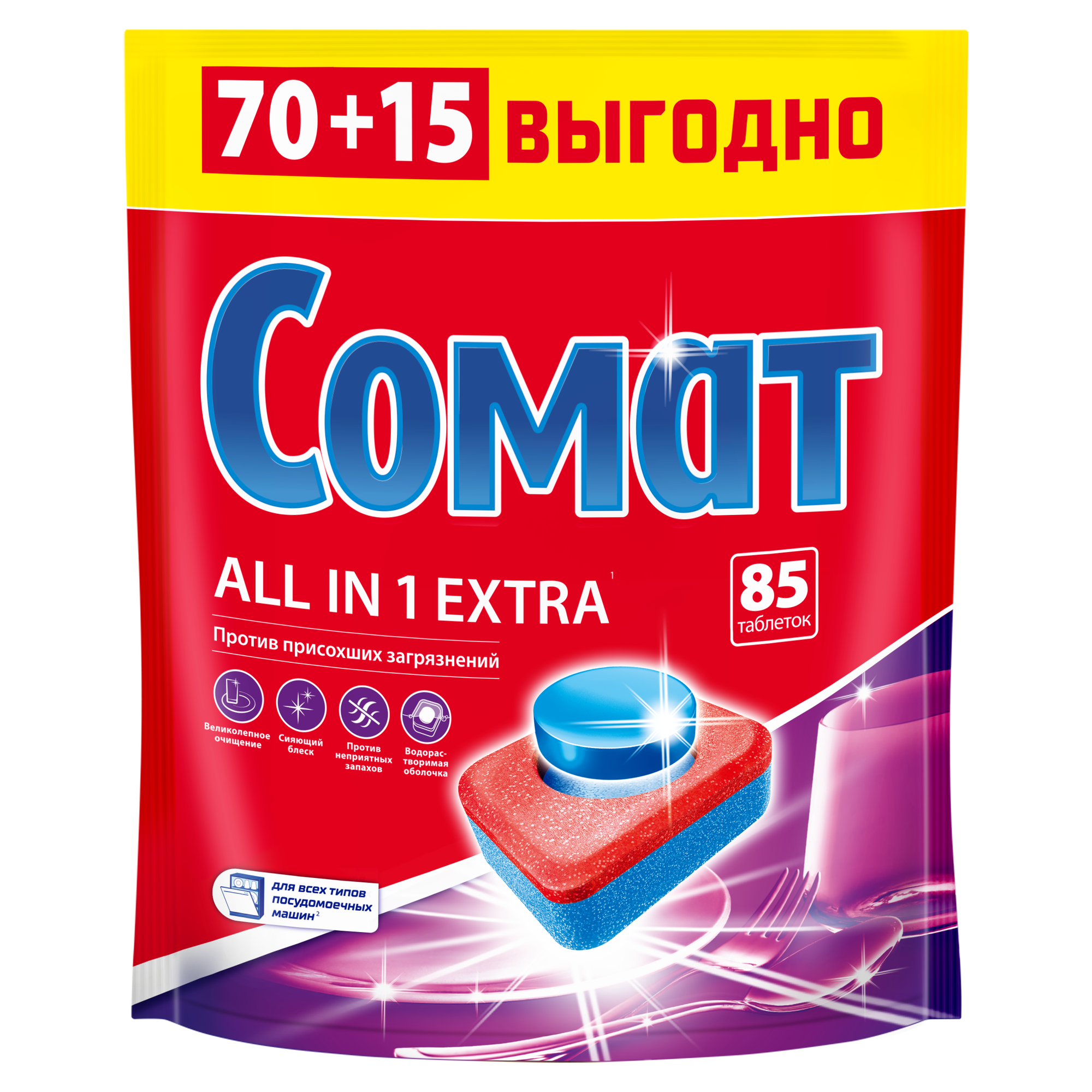 Таблетки для посудомоечной машины Сомат Экстра, 70+15 штук, средство для посудомоечной машины