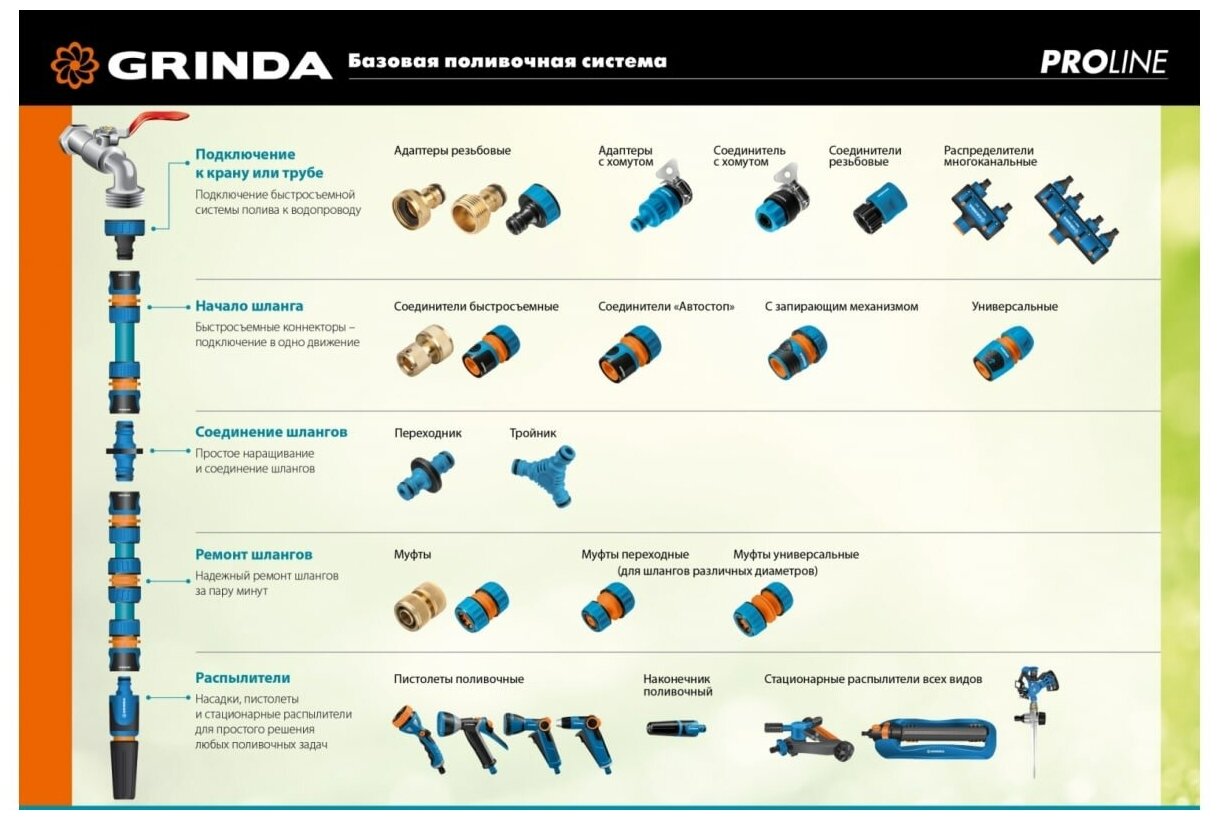 Распылитель веерный GRINDA GO-17B, 17 форсунок, латунные сопла, пластиковый 2 299 ₽