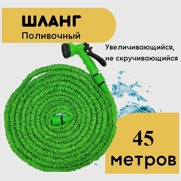 10 цен на Шланг поливочный растягивающийся до 45 м, латекс, быстросъёмный, с поливочным пистолетом, цвет зеленый