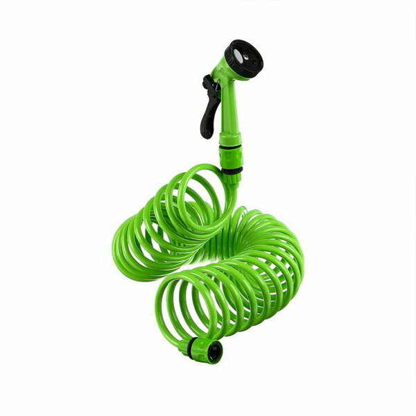 Отзывы на Шланг поливочный спиральный, 15 м, быстросъёмный, с поливочным пистолетом и штуцером, зелёный