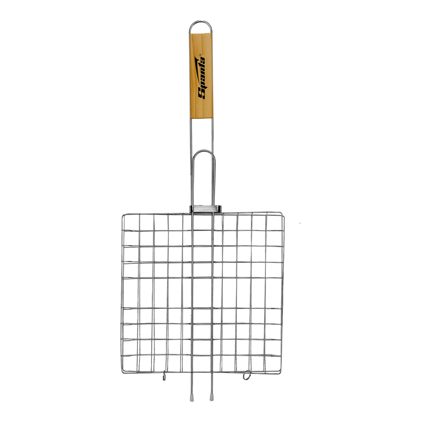 | Дополнительная информация | Хромированная решетка-гриль Sparta 69568 размером 230 х 230 мм будет полезна для любителей блюд, приготовленных на углях. С ее помощью можно качественно и равномерно пожарить мясо, овощи, птицу и рыбу, поэтому они получаются вкусными и сочными.ПреимуществаДолговечность и надежность решетки достигается за счет качественного материала изготовления — жаропрочной пищевой стали с хромовым покрытием.Рукоятка из древесины удобно лежит в руках и приятна на ощупь.Решетка имеет увеличенные опорные стержни, благодаря чему она надежно фиксируется на мангале, а рабочая поверхность при этом используется полностью. |