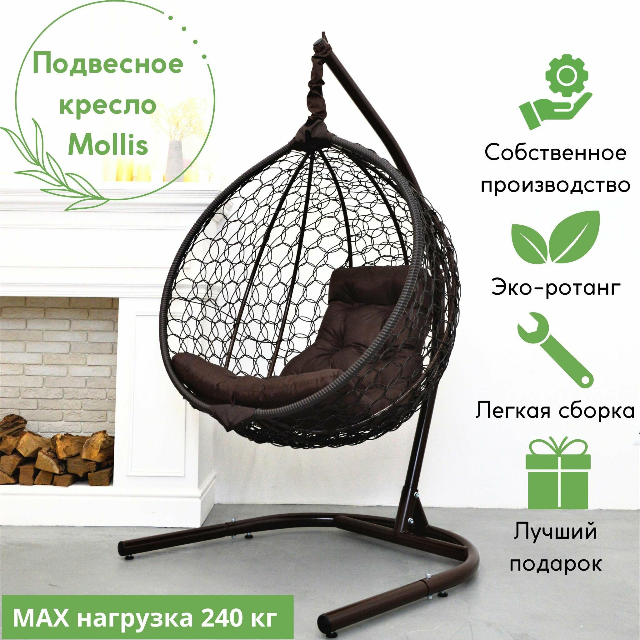 Отзывы на Подвесное кресло-кокон Mollis для дома и улицы Венге с Коричневой подушкой трапеция