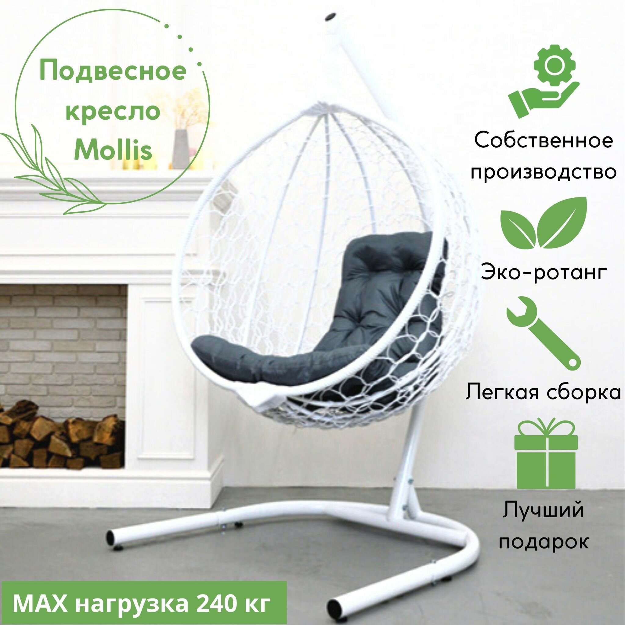Подвесное кресло-кокон Mollis для дома и улицы Белый с Серой подушкой трапеция информация: