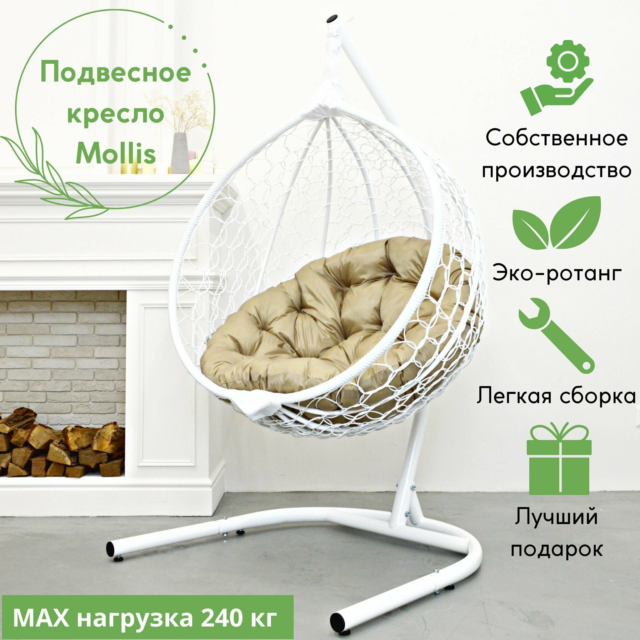 Подвесное кресло-кокон Mollis для дома и улицы Белый с Бежевой подушкой трапеция 14 690 ₽