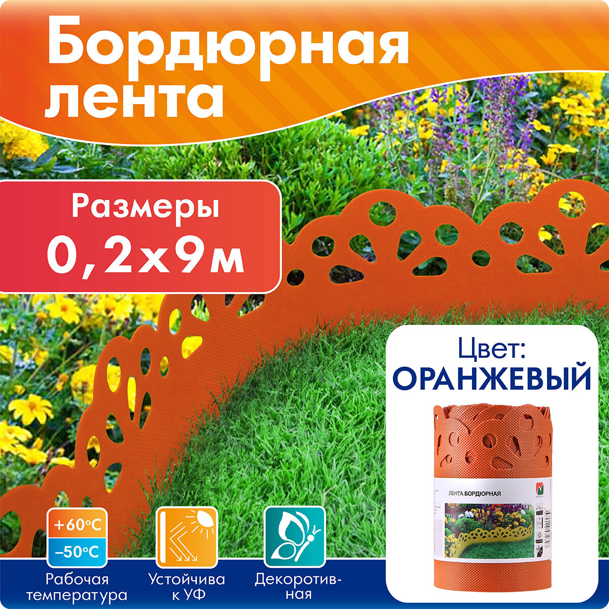 Лента бордюрная садовая для клумб 20 см * 9 м, оранжевая 616 ₽