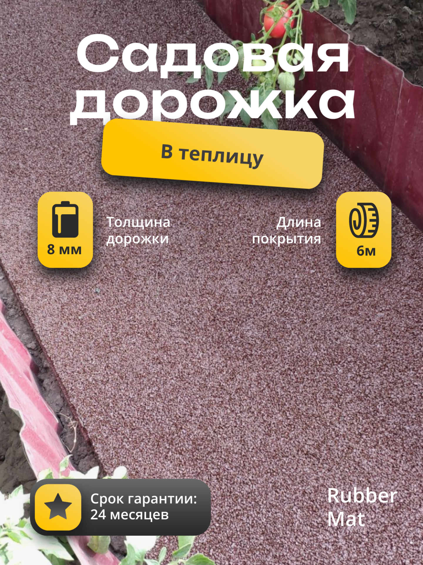 Отзывы на Дорожка садовая резиновая. Травмобезопасное противоскользящее напольное покрытие. Размером 6м на 50см Коричневый