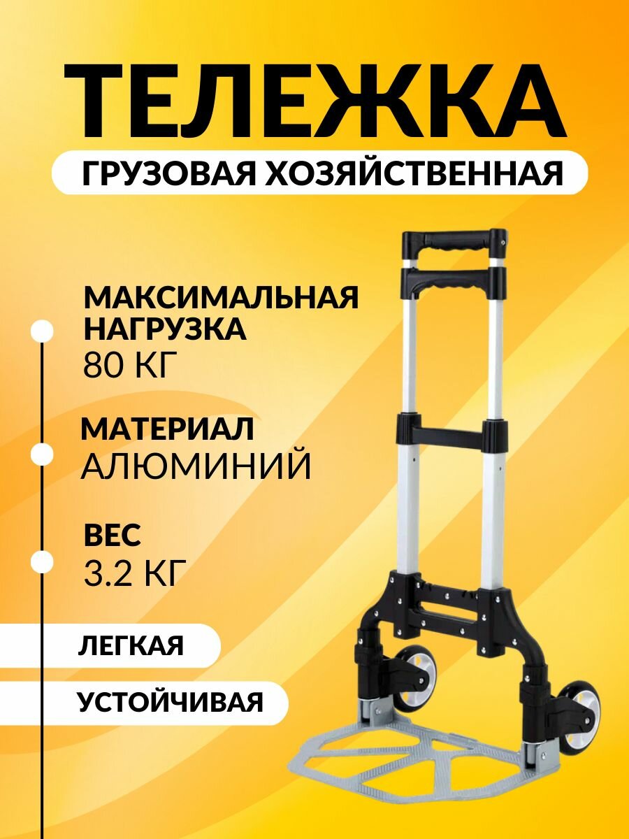 Тележка грузовая складная хозяйственная на 2х колесах, для склада, перевозки, переезда, тачка грузоподъемностью 80 кг черный информация: