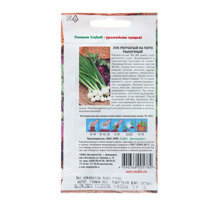 Семена Лук на зелень Рыночный репчатый на перо (седек) 1г информация: