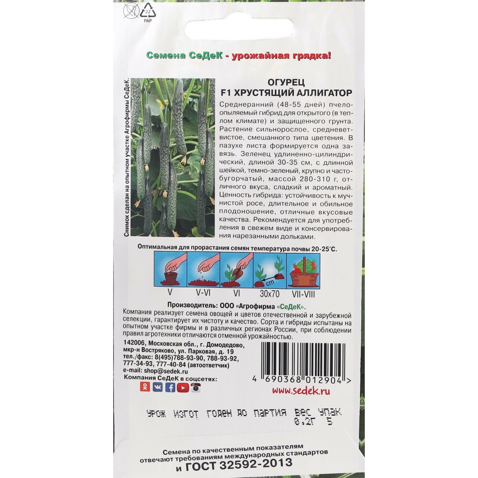 Семена Огурец Хрустящий Аллигатор F1 0,2г Пч (Седек) информация: