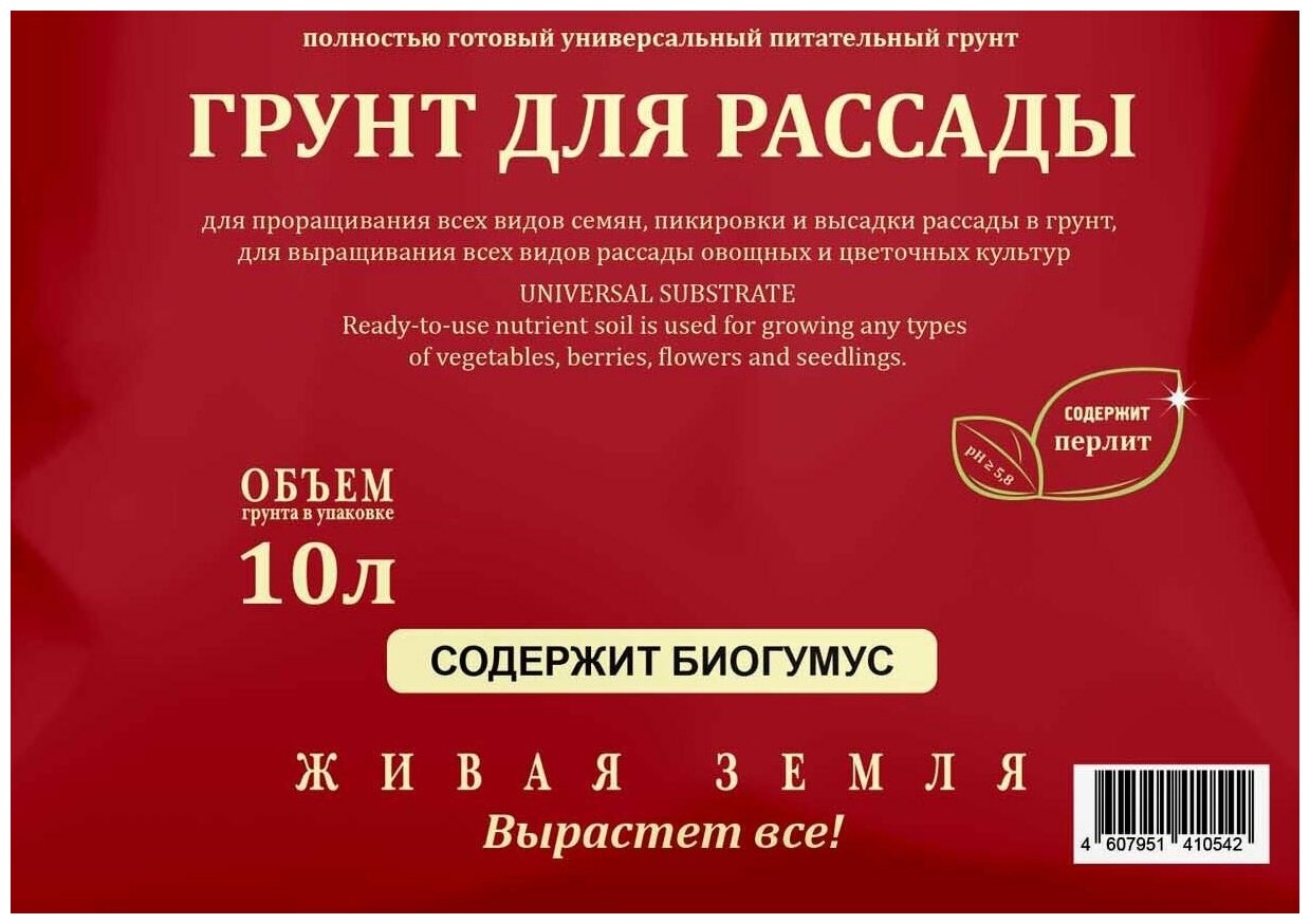 Грунт Terra Vita живая земля для рассады, 10 л, 3.5 кг