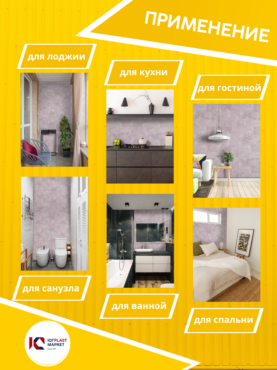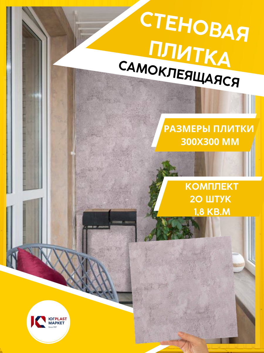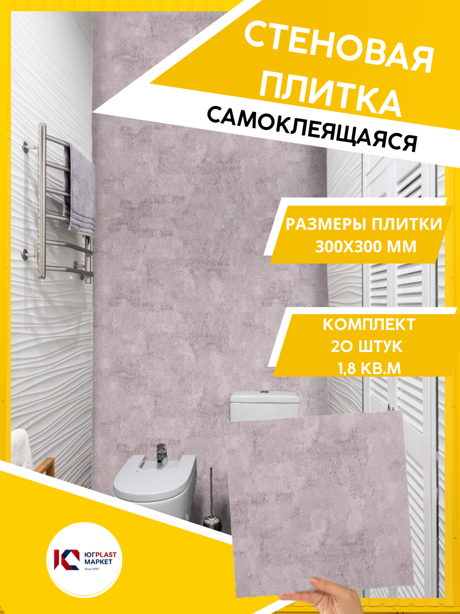ЮГPLASTMARKET Плитка Бетон Чикаго Самоклеящиеся панели для стен ПВХ для декора 30х30 см, 20шт. UPMP ZM информация: