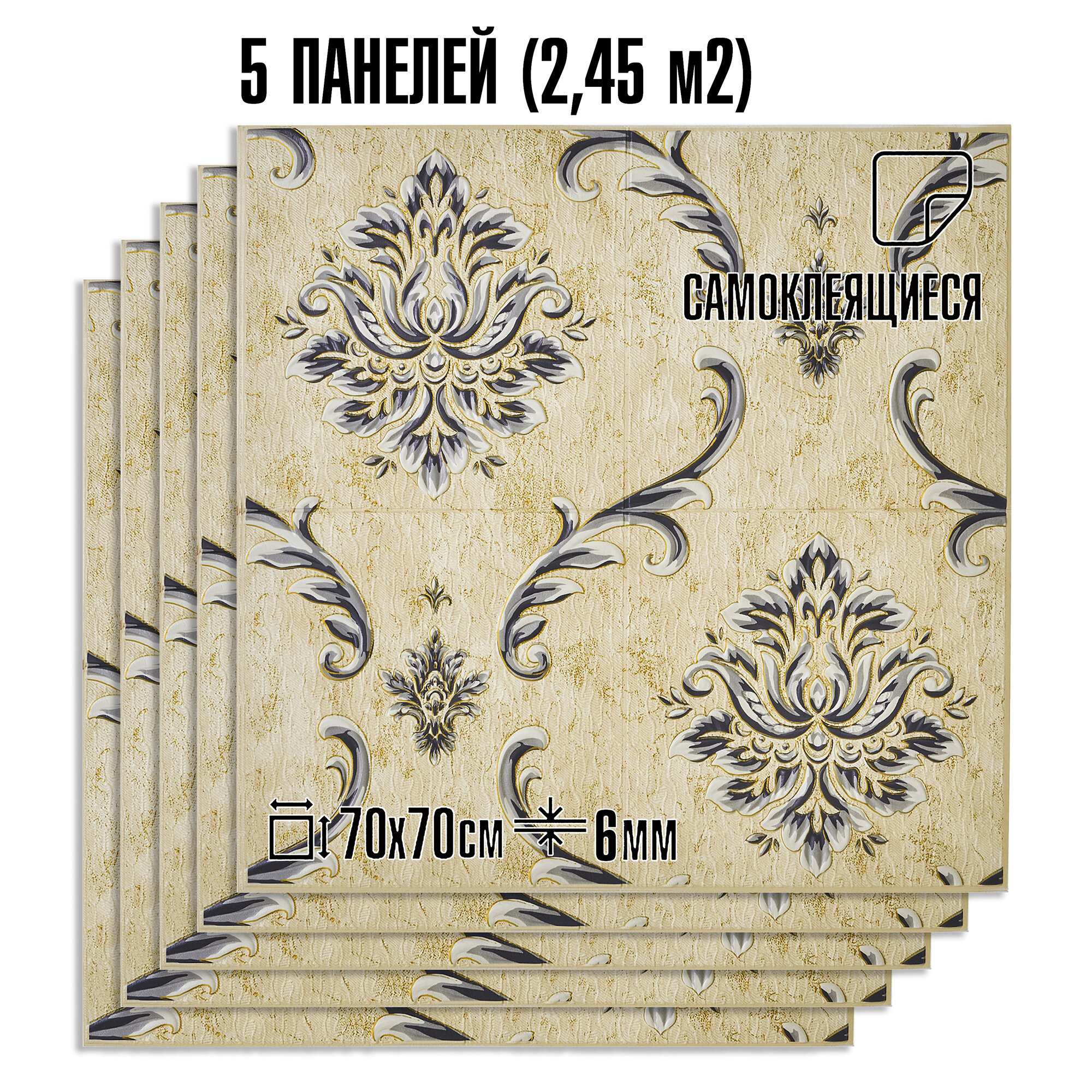 LAKO Мягкая самоклеящаяся 3D панель комплект 5 шт Барокко Бежевый 1 70x70см LKD-5-1011