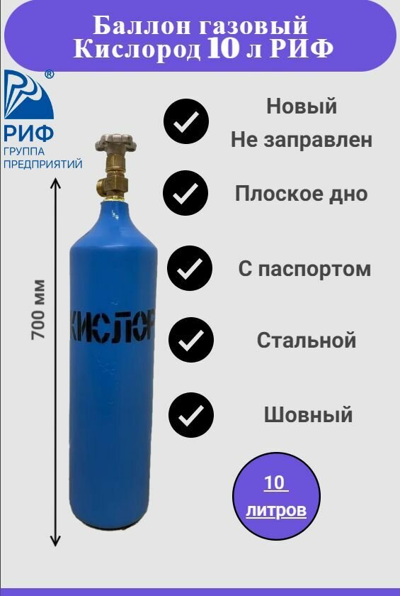 Отзывы на Баллон газовый для кислорода, 10 литров, плоское дно, РИФ, сварной