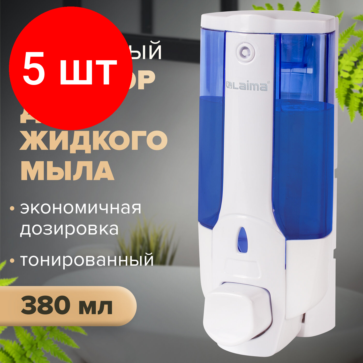 Комплект 5 шт, Диспенсер для жидкого мыла LAIMA, наливной, 0.38 л, белый (тонированный), ABS-пластик, 603921 5 021 ₽