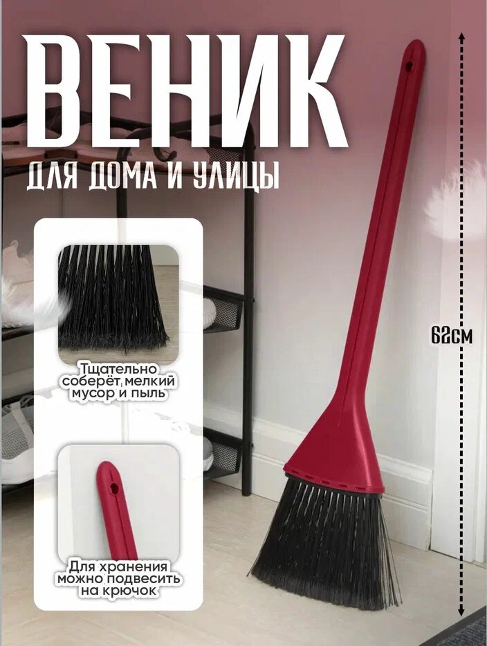 10 цен на Веник для уборки пластиковый, бордо 2927