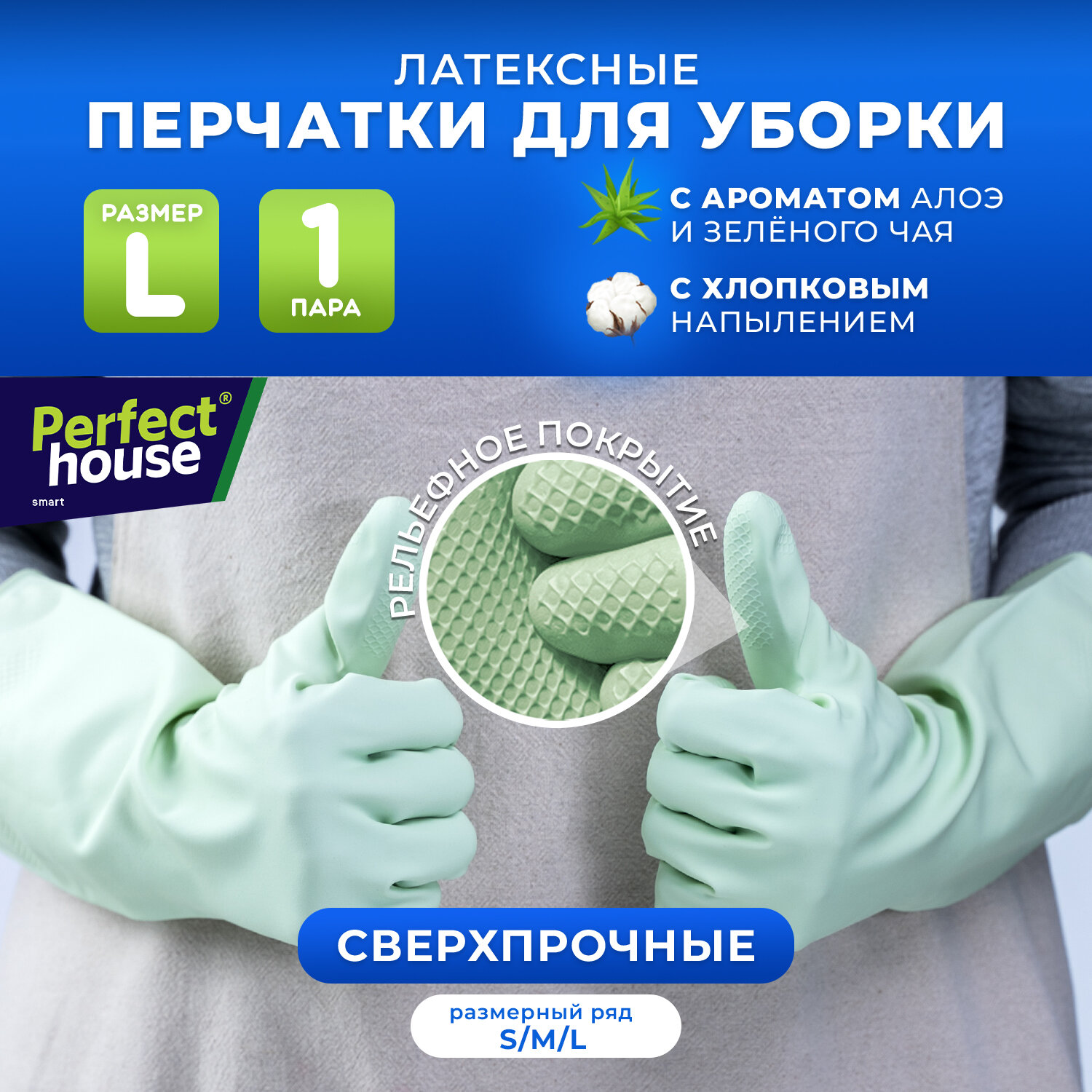 Перчатки для уборки Perfect House хозяйственные, резиновые из прочного латекса, размер L, 1 пара информация: