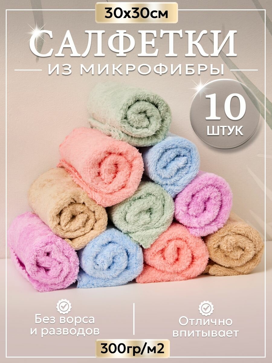 Салфетки для уборки из микрофибры цветные, 10 штук 299 ₽