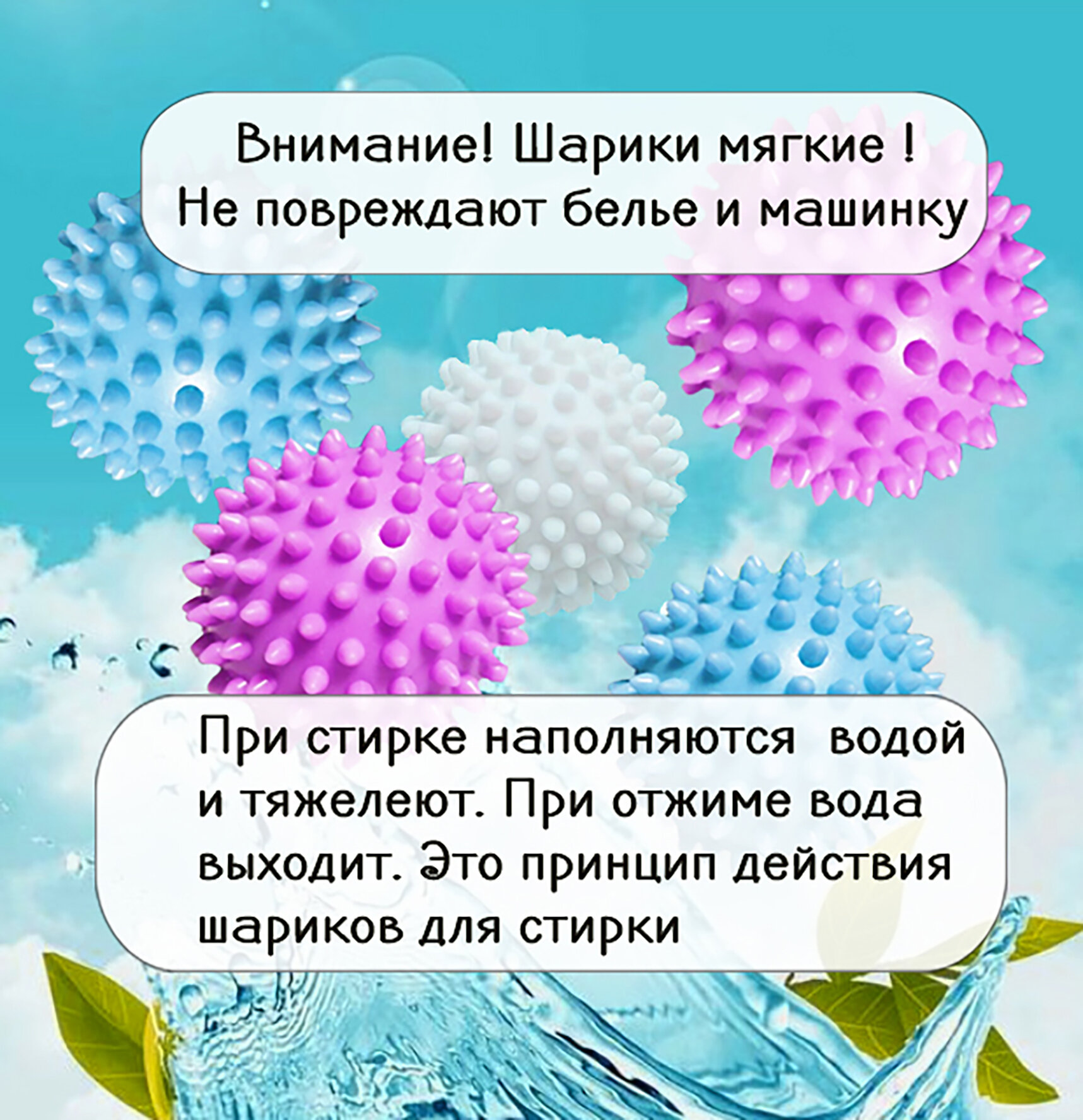 Отзывы на Шарики для стирки и сушки белья и пуховиков, набор 6 шт, цвет небесно-голубой