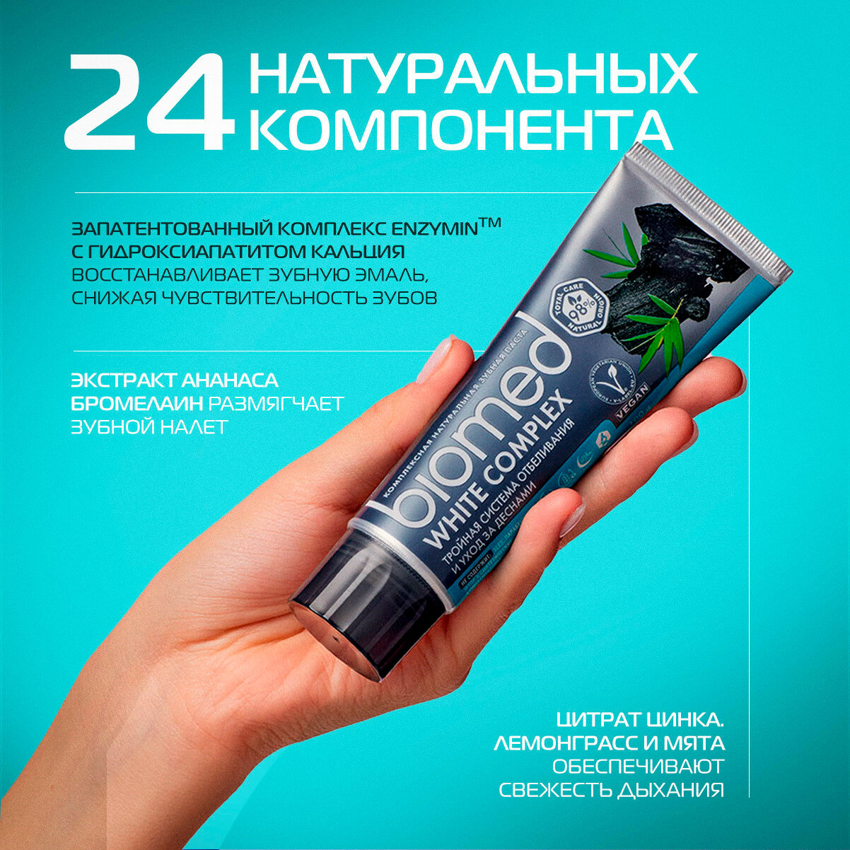 Отбеливающая зубная паста BIOMED WHITE COMPLEX с углем, 100 гр, 2 шт информация: