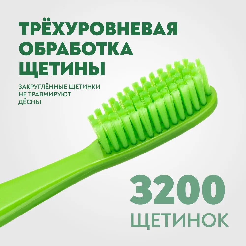 Зубная щетка PresiDENT Classic Medium (7 МИЛ) Средней жесткости, зеленый / салатовый, диаметр щетинок 0.18 мм (3 щетки) информация: