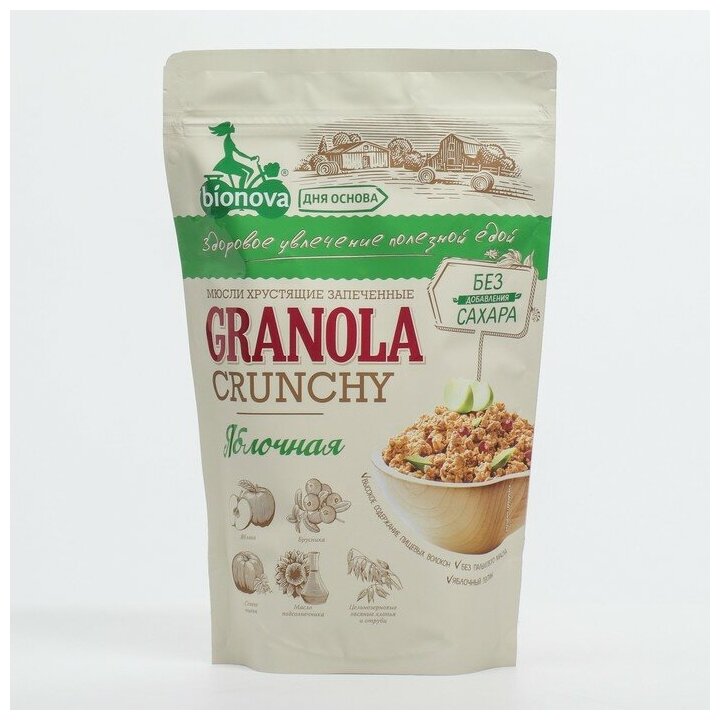 10 цен на Мюсли Crunchy BIONOVA Яблочные 400г