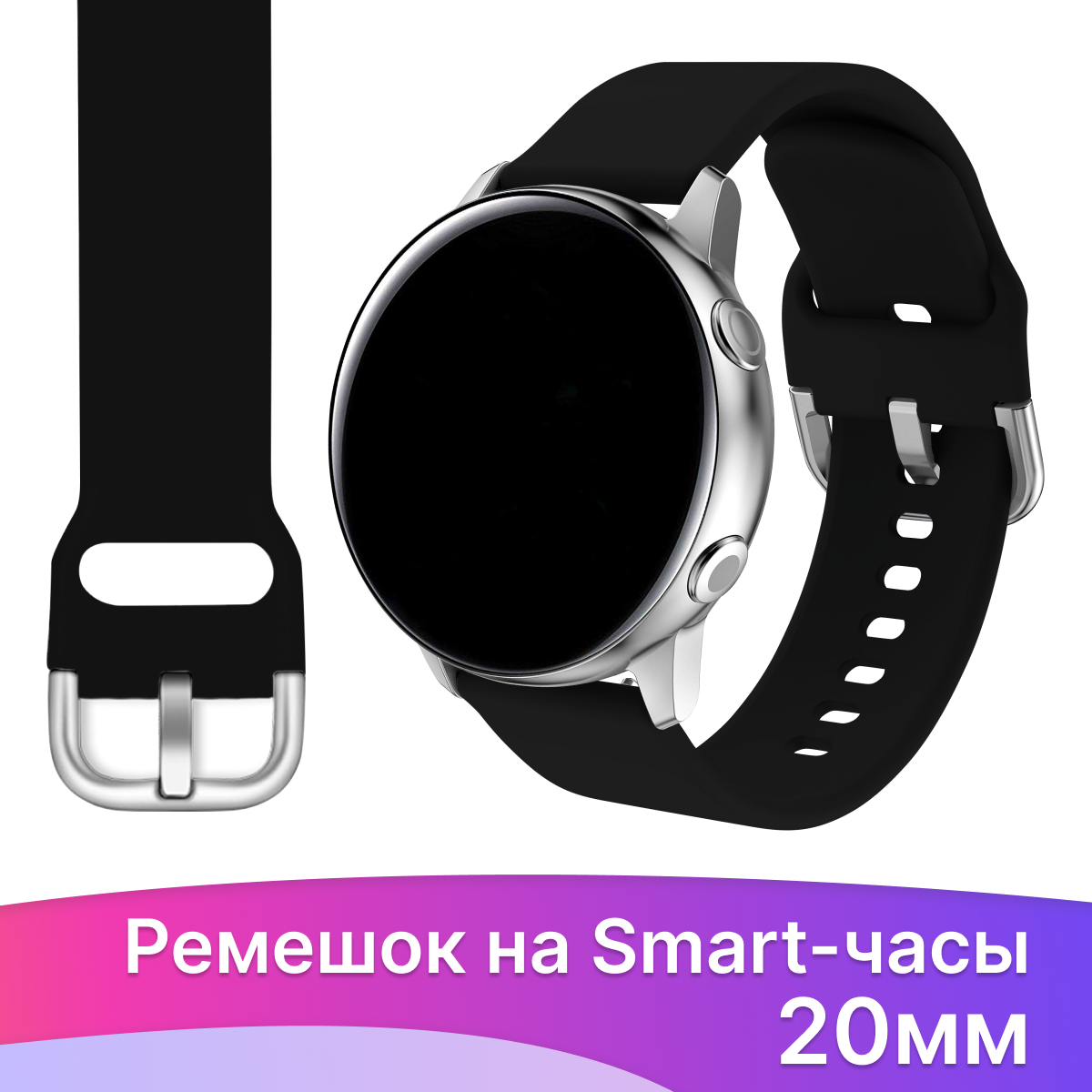 Силиконовый ремешок (20mm) для Samsung Galaxy, Honor, Huawei, Amazfit, Garmin, Xiaomi Watch / Черный информация: