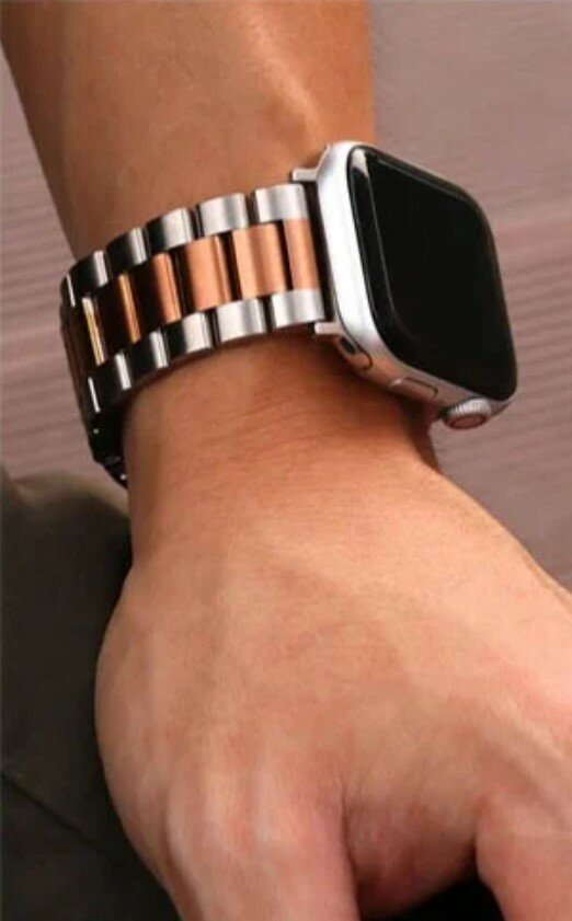 Отзывы на Блочный ремешок для Apple Watch 38-40-41 mm, Series 1-9, SE / Сменный металлический браслет для смарт часов на застежке Эпл Вотч 38-41 мм Серебристый-медный