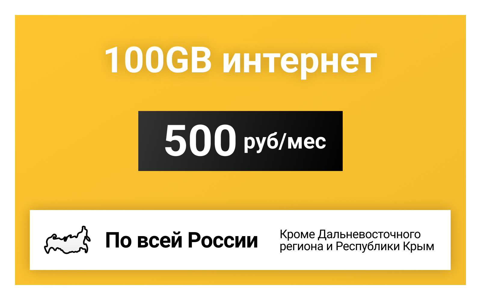 10 цен на Сим-карта / 100GB интернет тариф для модема за 500 р/мес (Вся Россия)