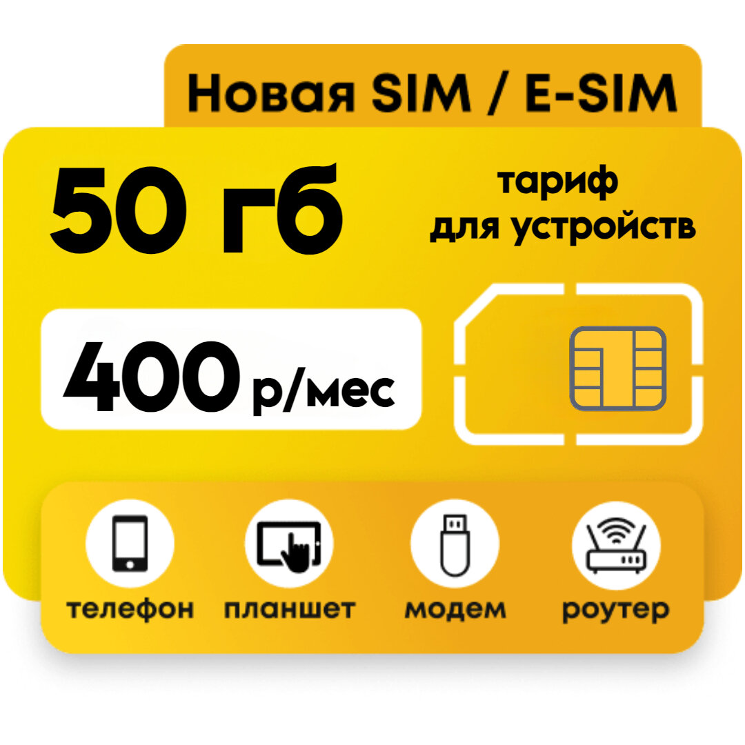 Сим карта c интернетом и раздачей, 50ГБ за 450р/мес