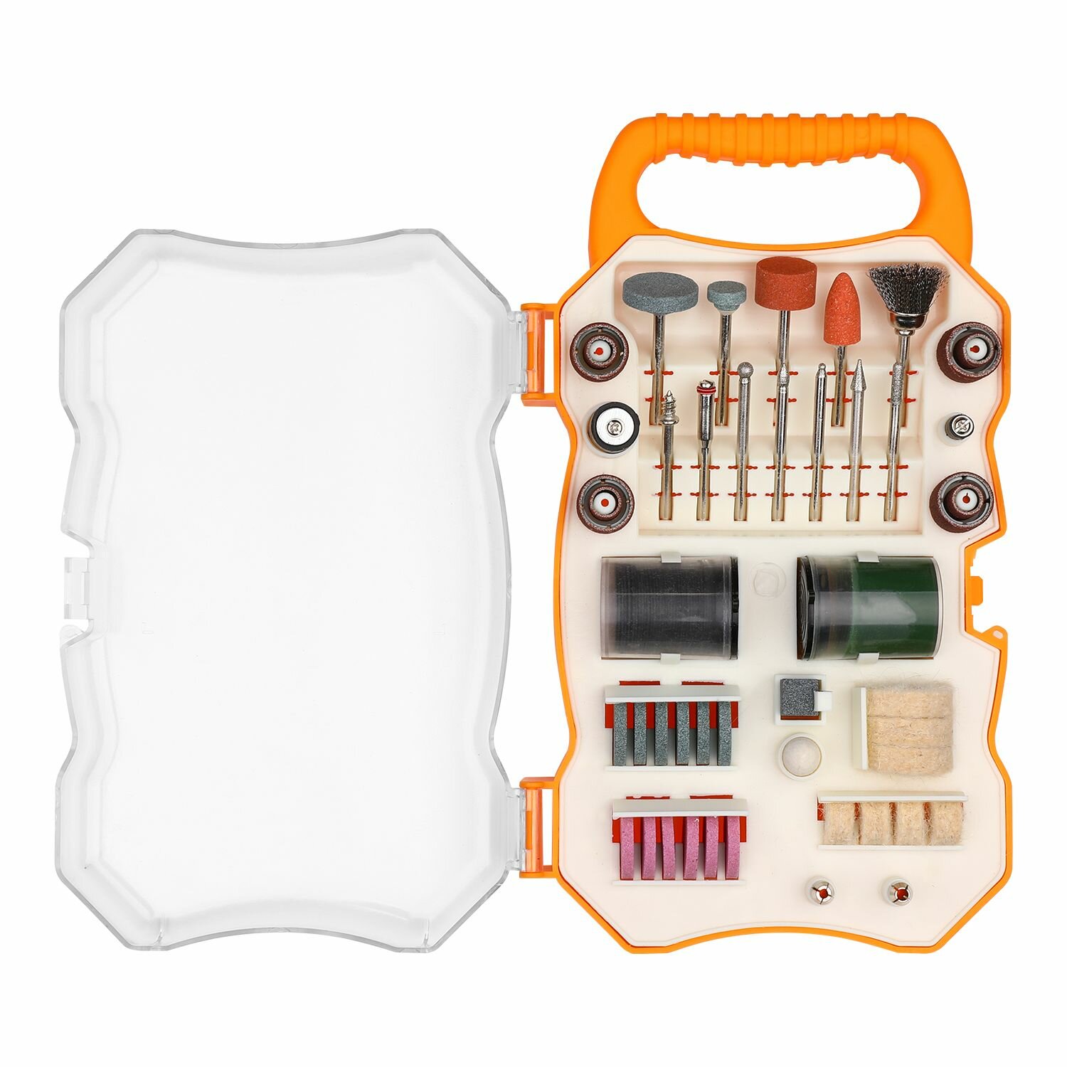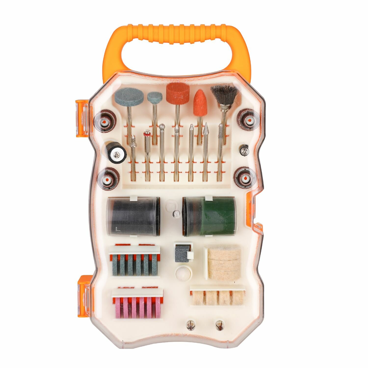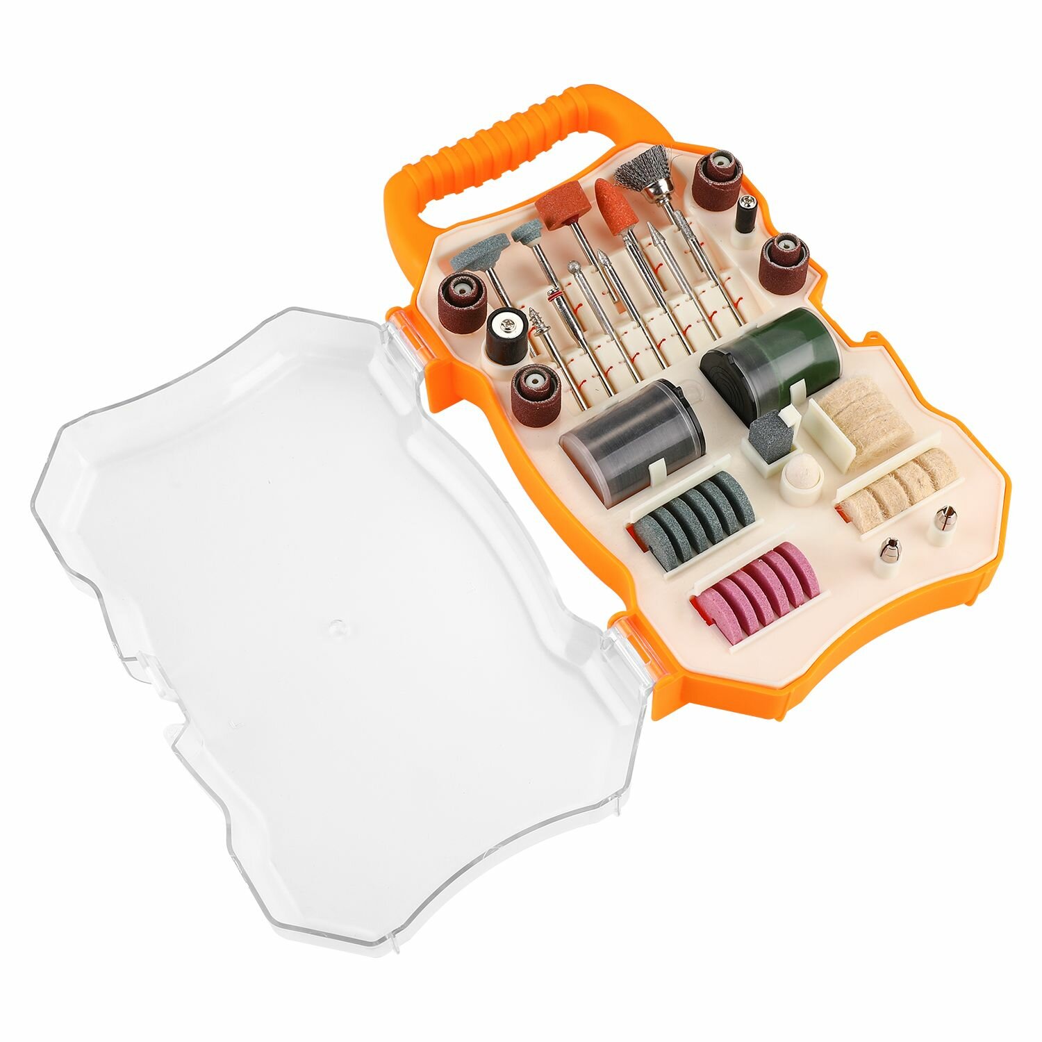 | Дополнительная информация | комплектация: шлифовальная лента 1/2" - 4 шт; шлифовальная лента1/4" - 4 шт; шлифовальная оправа 1/2" - 1 шт; шлифовальная оправа 1/4" - 1 шт; барабан шлифовальный - 2 шт; цилиндр шлифовальный - 2 шт; стальная щетка из нержавеющей стали - 1 шт; стопорный штифт для шлифовального фетра - 1 шт; отрезной круг - 1 шт; алмазные насадки - 5 шт; отрезные колеса 1" - 36 шт; полироль - 1 шт; твердосплавный шлифовальный круг - 6 шт; шлифовальный круг из оксида алюминия - 6 шт; точило - 1 шт; шлифовальный войлок - 1 шт; войлочные прокладки 1/2" - 3 шт; войлочные прокладки 1" - 4 шт; цанга - 2 шт |