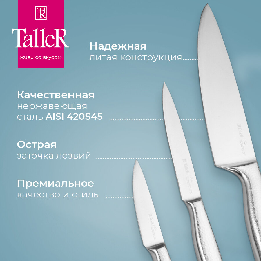Набор кухонных ножей TalleR TR-22080, острые 3 шт, нержавеющая сталь информация: