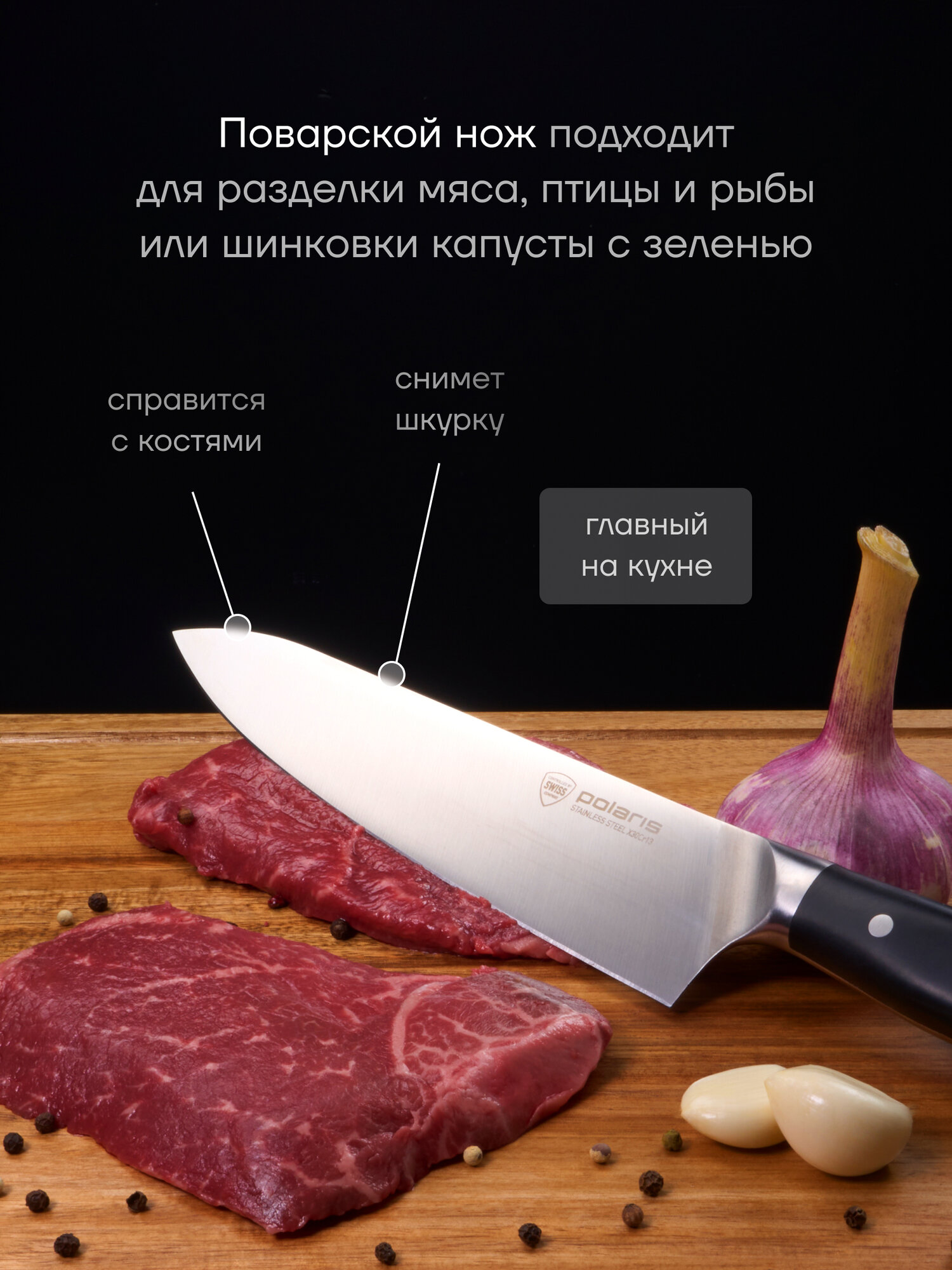 Polaris набор ножей ножей Stein-4SS, 4 предмета: поварской нож, ножик для нарезки, нож кухонный универсальный, овощной нож для чистки и нарезки овощей и фруктов 5 208 ₽