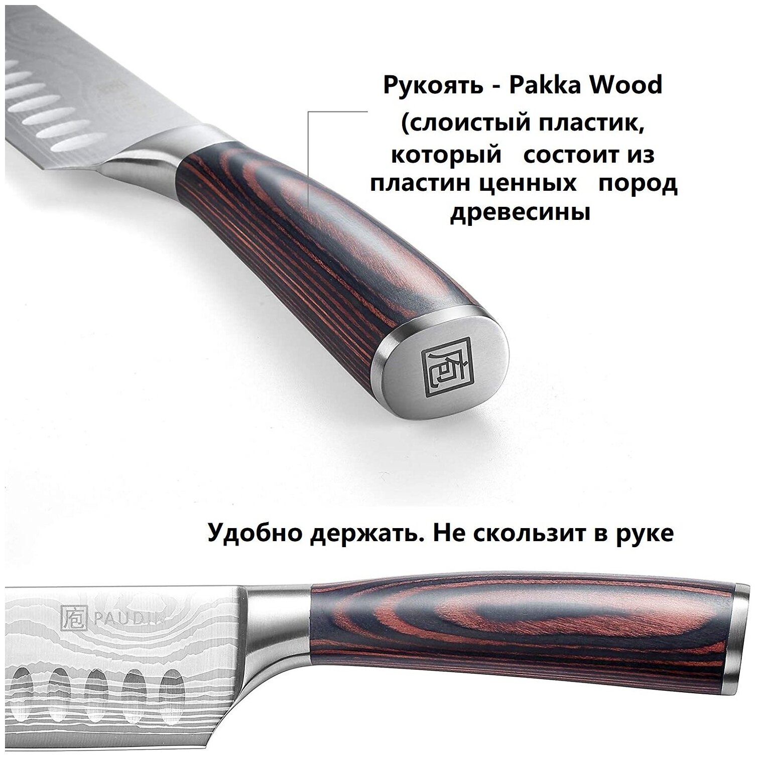 PAUDIN Pro / Нож кухонный профессиональный шеф повара сантоку универсальный для мяса и овощей длина лезвия 17 см 2 996 ₽