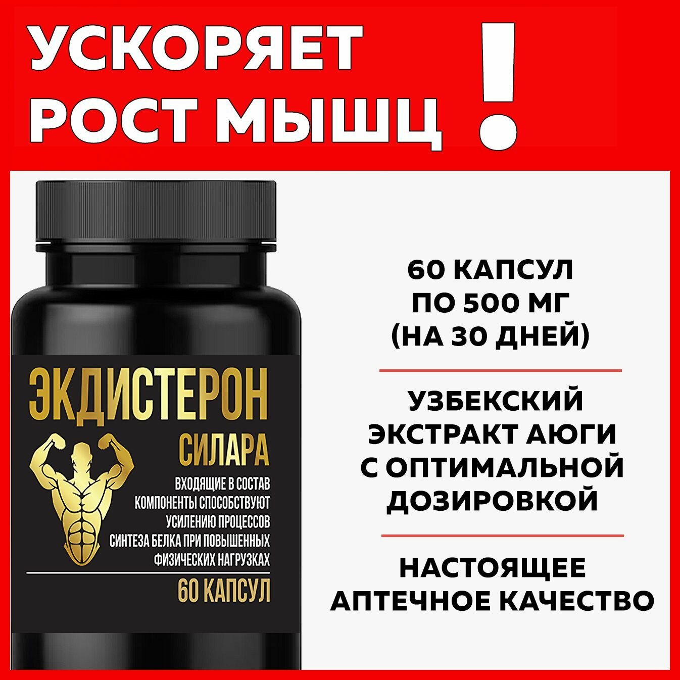 Экдистерон + туркестерон для роста мышц (60 капсул по 500 мг) растительный анаболик Ecdysterone Silara информация:
