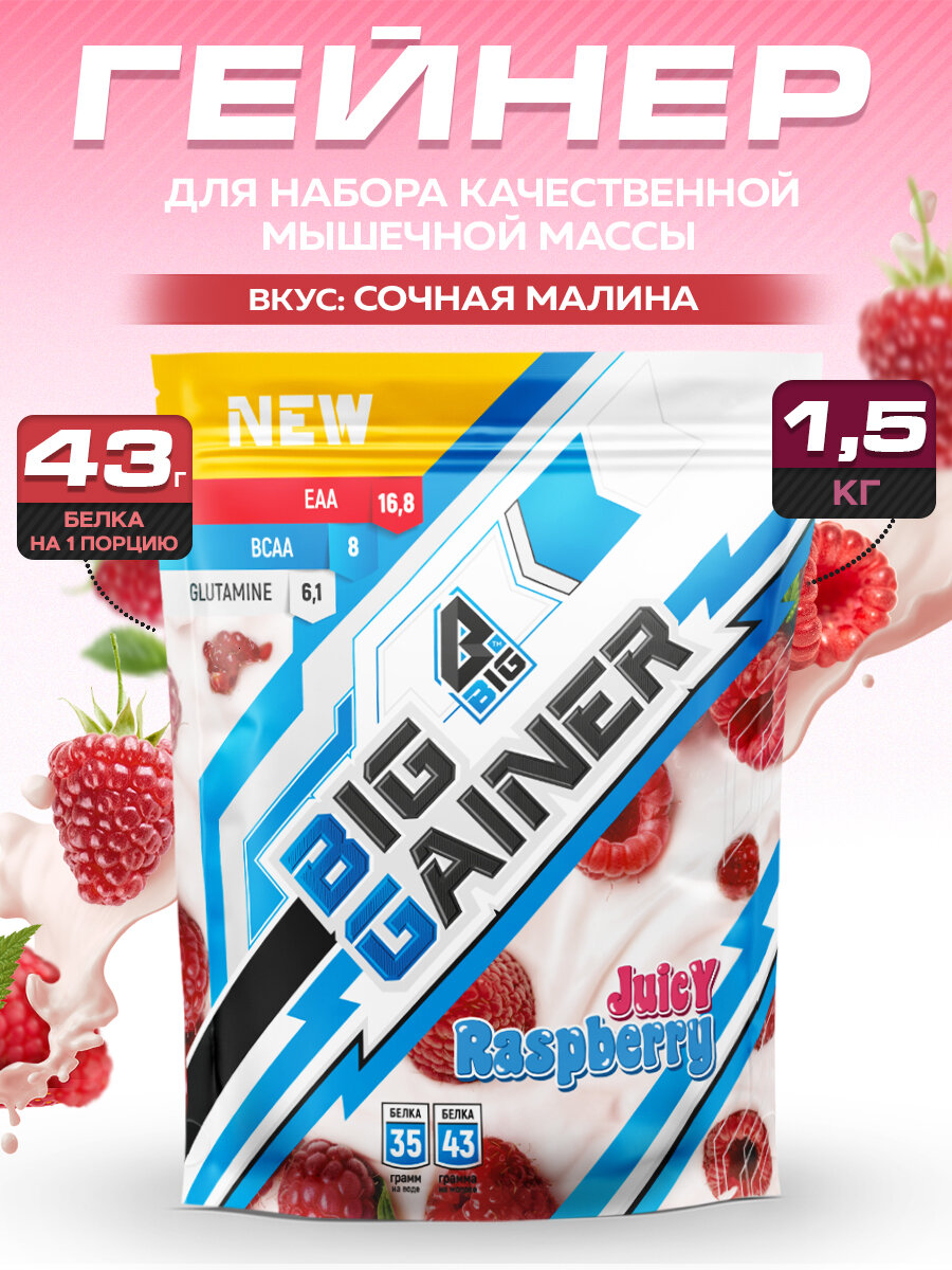 Гейнер BIGSNT BIG GAINER для набора мышечной массы высокобелковый, со вкусом малины / спортивное питание, 1.5 кг 1 971 ₽