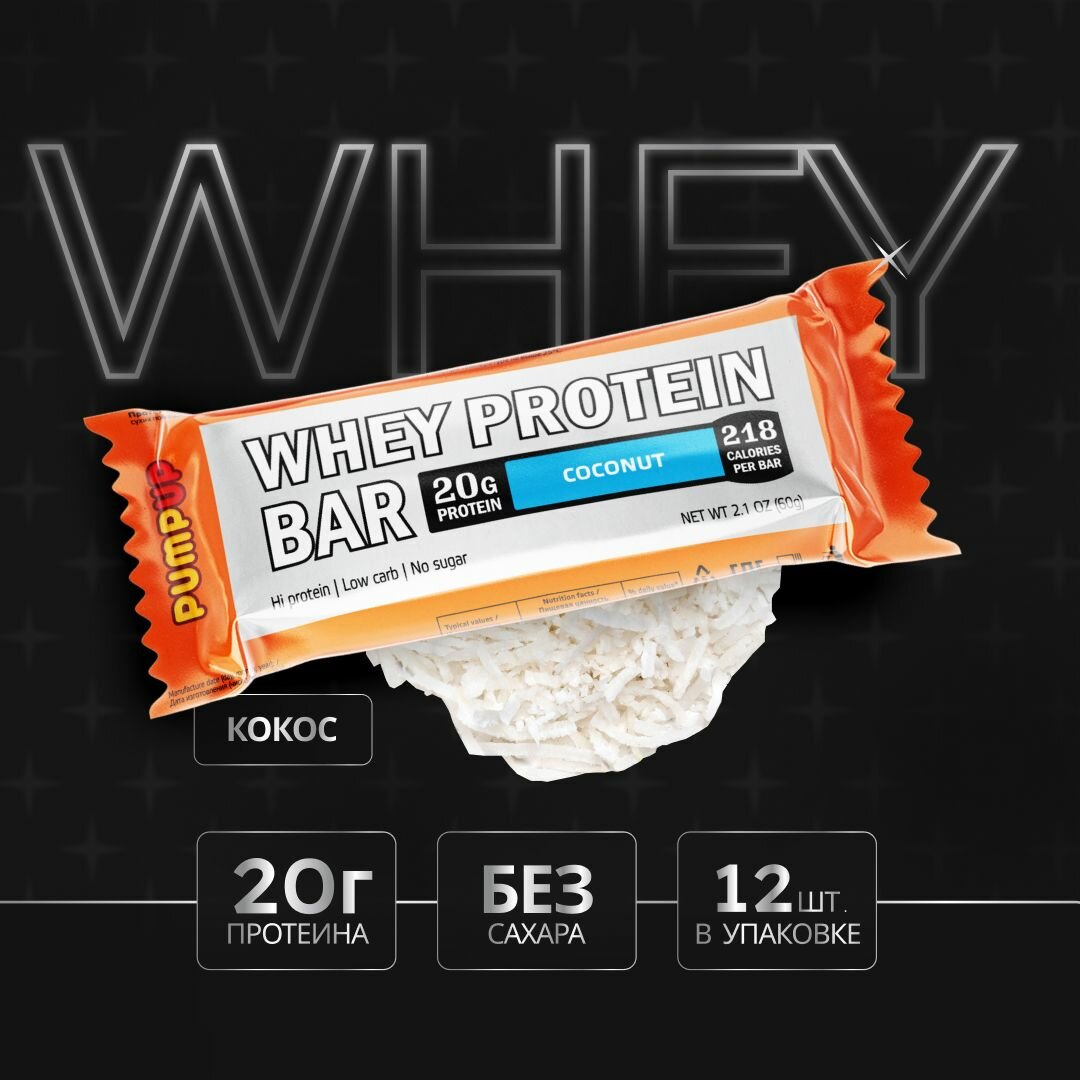 Протеиновые батончики "Кокос" 12 шт PUMP UP Полезное питание , батончик протеиновый с высоким содержанием белка , без сахара .