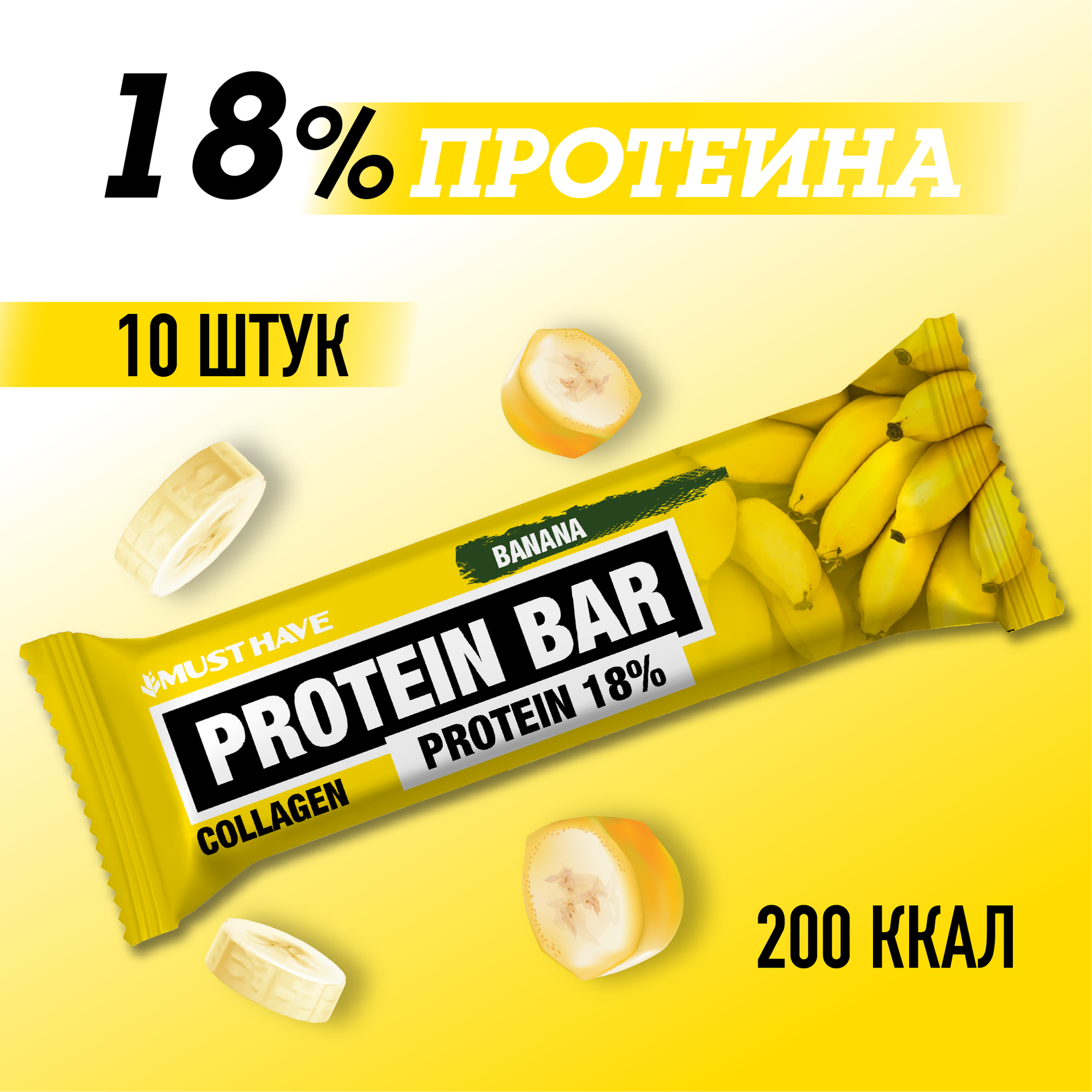 Протеиновые батончики MustHave Банан, 10 штук по 50 гр информация: